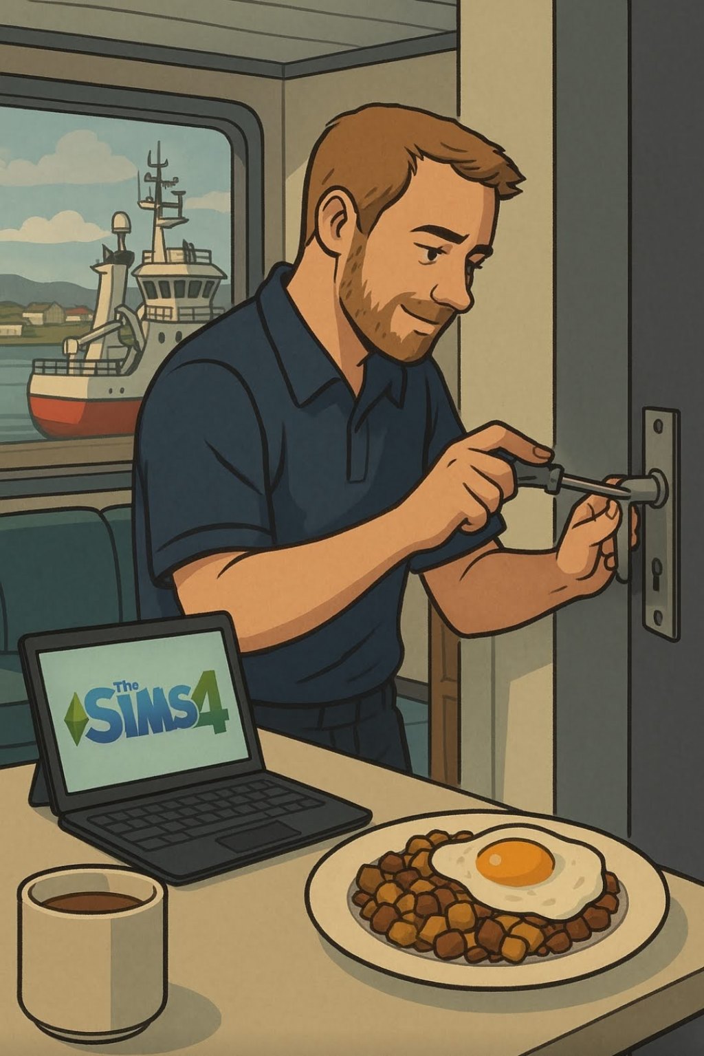 Første oppgave var å fikse en skeiv dør på en lugar. Det er kanskje ikke det mest glamorøse med sjølivet, men slike små ting har en tendens til å irritere til daglig, så det er tilfredsstillende å få det rettet opp. Ikke minst føles det godt når ting funker som de skal igjen.